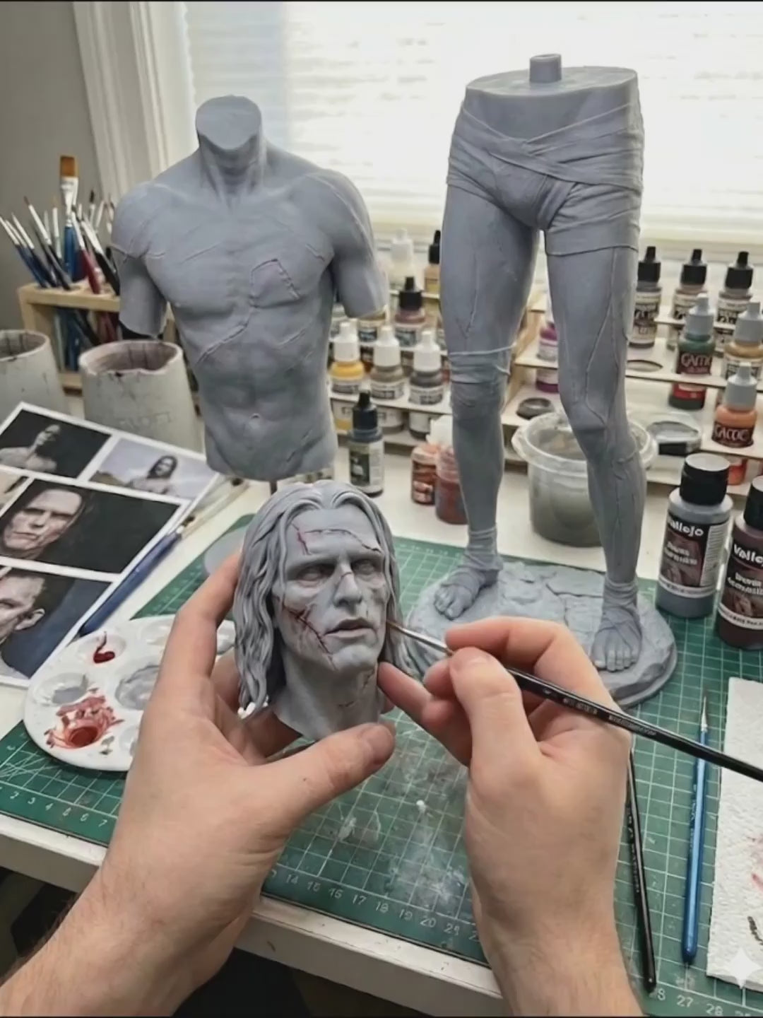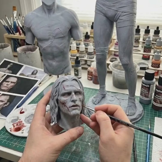 Varnishing: A matte varnish ensures longevity, while a gloss varnish is applied to the eyes and open wounds to give them a disturbing "wet" look. Therefore, the figure you receive is unique in the world. The brushstrokes are exclusively yours.